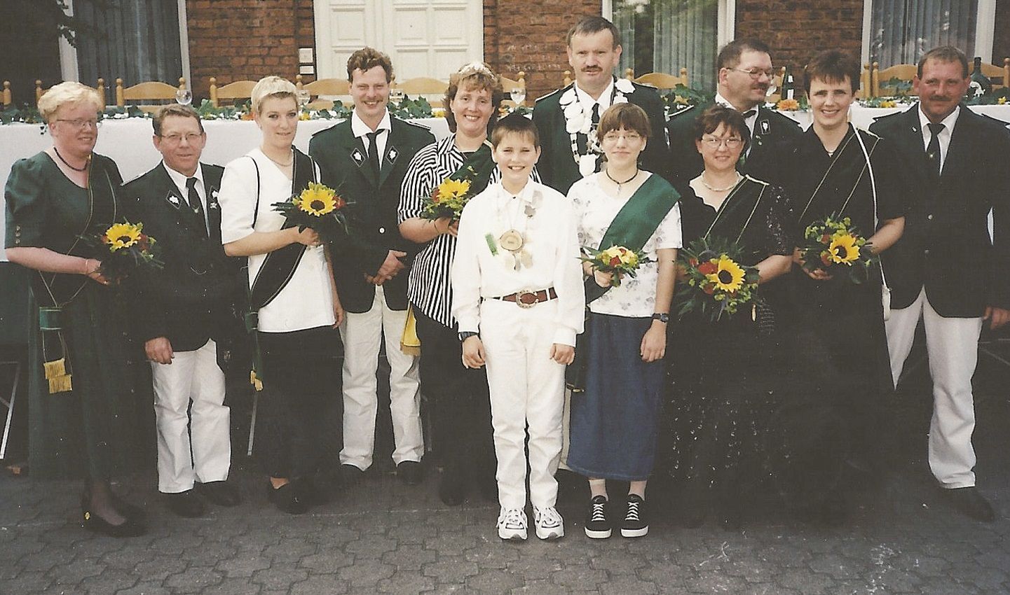 Reihen derer, die sich Jahr für Jahr am zweiten Wochenende im Juli zum Antreten, Königschießen und Feiern versammeln – diejenigen, die aktiv im Verein mitwirken dabei in grüner Jacke. Einer festen Formation wie der männlichen und weiblichen Ehrengrade oder dem Vorstand zuzugehören macht das Fest für viele noch attraktiver. Der Zusammenhalt ist groß – sobald man seine grüne Jacke anhat, fühlt man sich wie in einer großen Familie gut aufgehoben.