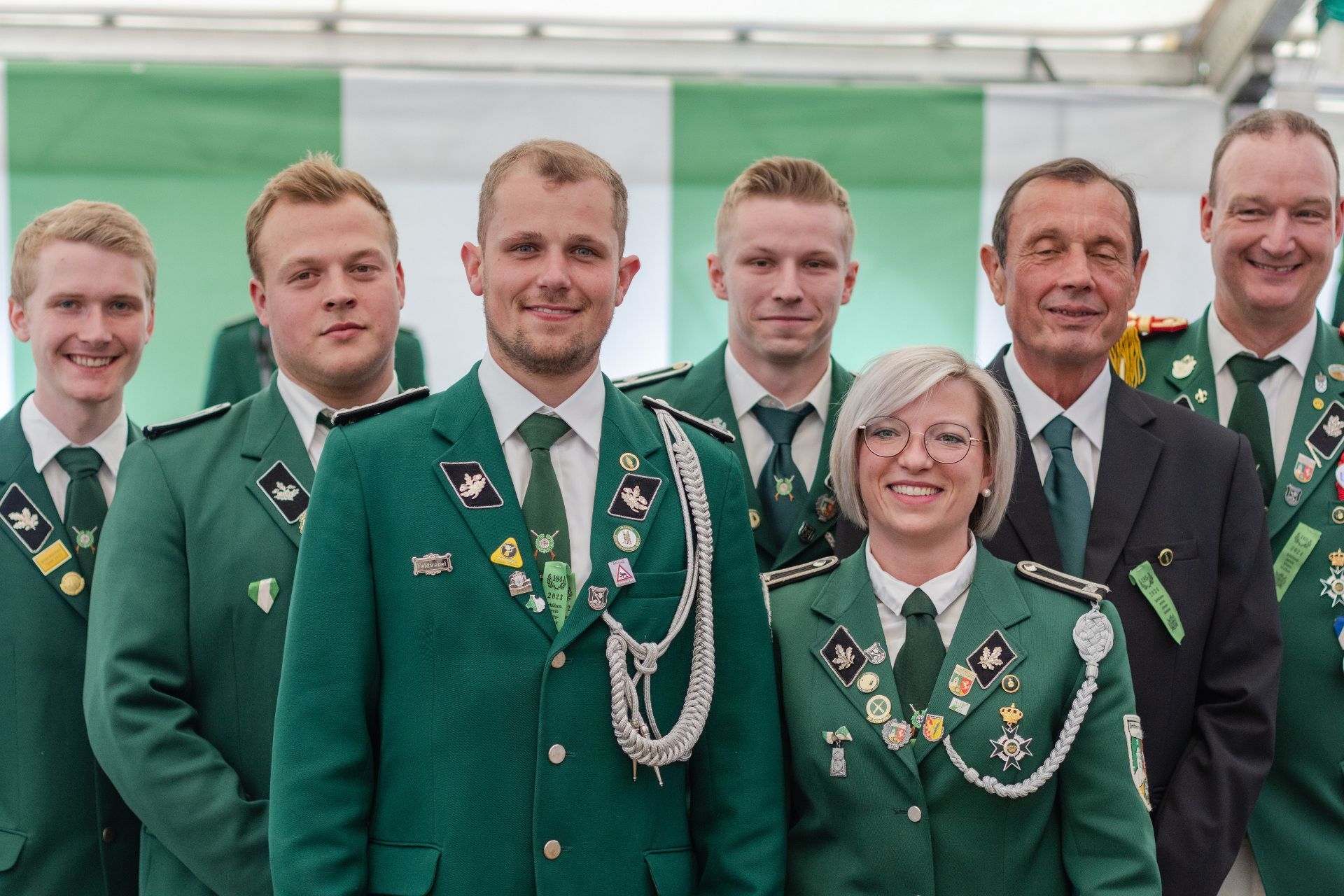 Den linken Flügel holte Benni Kohues runter und beim rechter Flügel war Michel Wellermann treffsicher. Letzterer wurde nach dem Schießen auch vom neuen König in den Hofstaat berufen. Michel Wellermann wird mit Throndame Michelle Teriete die Regenten im kommenden Jahr begleiten. Des Weiteren wurden in den Hofstaat berufen: Luca Lanari und Hannah Pohl, Christoph Rüping und Marlena Schwinhorst sowie Marco Bellmann und Verena Roer.