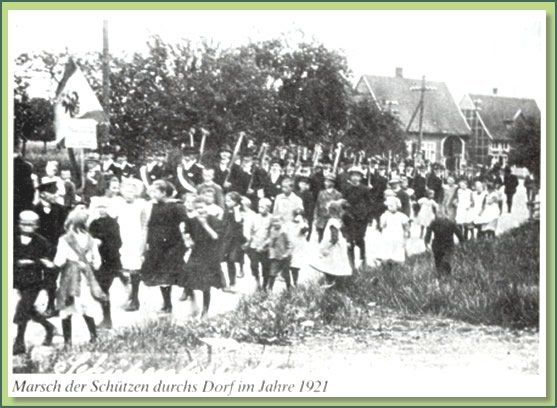 Die Schützenvereine der umliegenden Gemeinden waren eingeladen worden. Das Antreten erfolgte an der Telgter Straße. Oberst Bernhard Vincke fungierte als Kommandeur aller angetretenen Schützen. Nach der Paradeaufstellung bewegte sich ein stattlicher Festzug durch das Dorf zum Sportplatz. Die Begrüßung sämtlicher Vereine wurde durch den Vorsitzenden Bernhard Hölscher vorgenommen. Ein Beifallssturm erhob sich, als Frau Hegemann ein Ehrenbanner, das von den ehemaligen Königinnen gestiftet worden war, an die Vereinsfahne heftete. Oberst Vincke hielt die Festrede und gedachte der Gefallenen der Kriege. An dem neuen Schießstand entwickelte sich anschließend ein heißer Kampf um die ausgesetzten Preise. Die Schuljugend erfreute die Schützen und Gäste durch Vorführungen. Vor dem Abmarsch wurde der traditionelle Fahnenschlag vom Schützen H. Bröker nach der Musikweise mit dem Text: