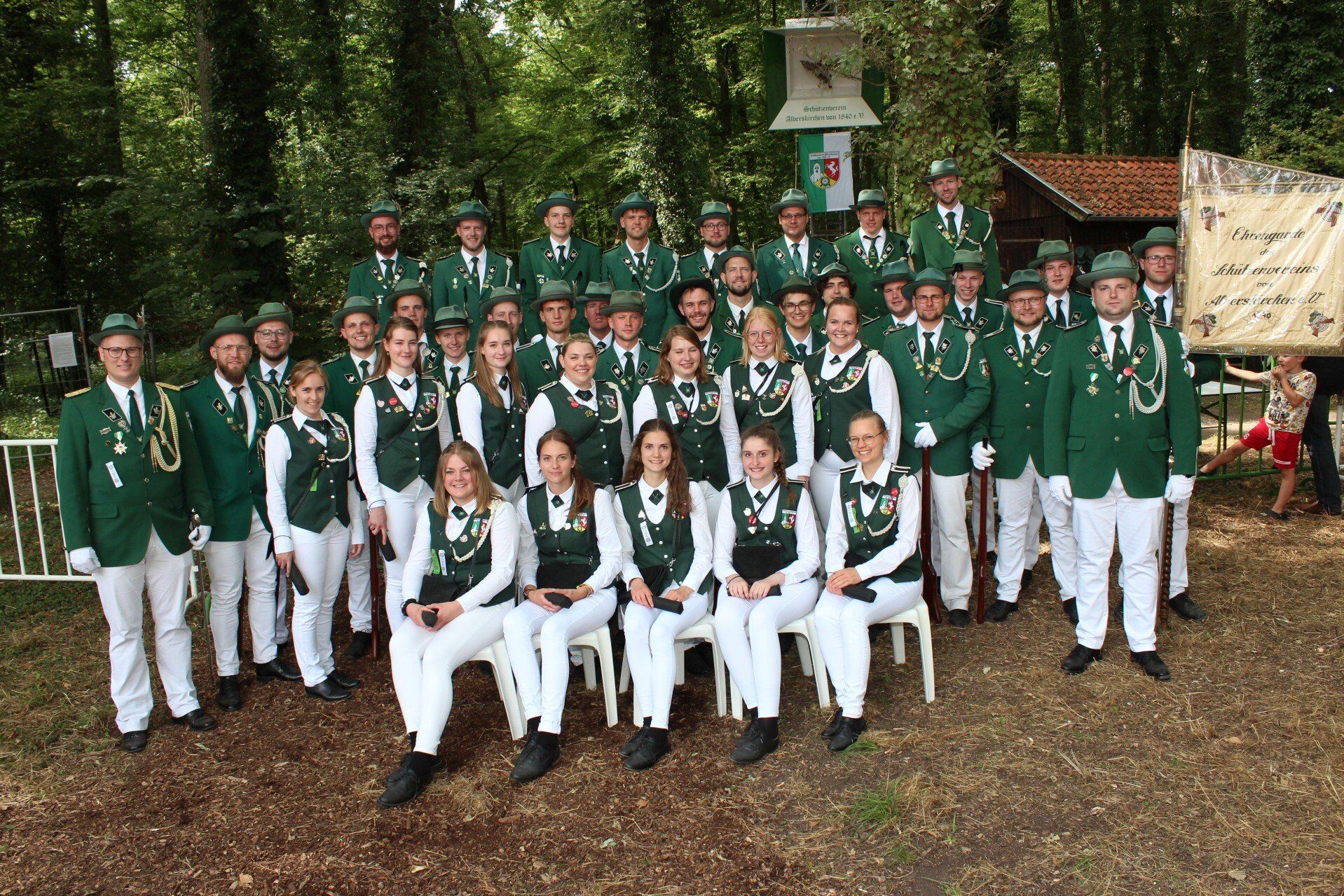 Reihen derer, die sich Jahr für Jahr am zweiten Wochenende im Juli zum Antreten, Königschießen und Feiern versammeln – diejenigen, die aktiv im Verein mitwirken dabei in grüner Jacke. Einer festen Formation wie der männlichen und weiblichen Ehrengrade oder dem Vorstand zuzugehören macht das Fest für viele noch attraktiver. Der Zusammenhalt ist groß – sobald man seine grüne Jacke anhat, fühlt man sich wie in einer großen Familie gut aufgehoben.