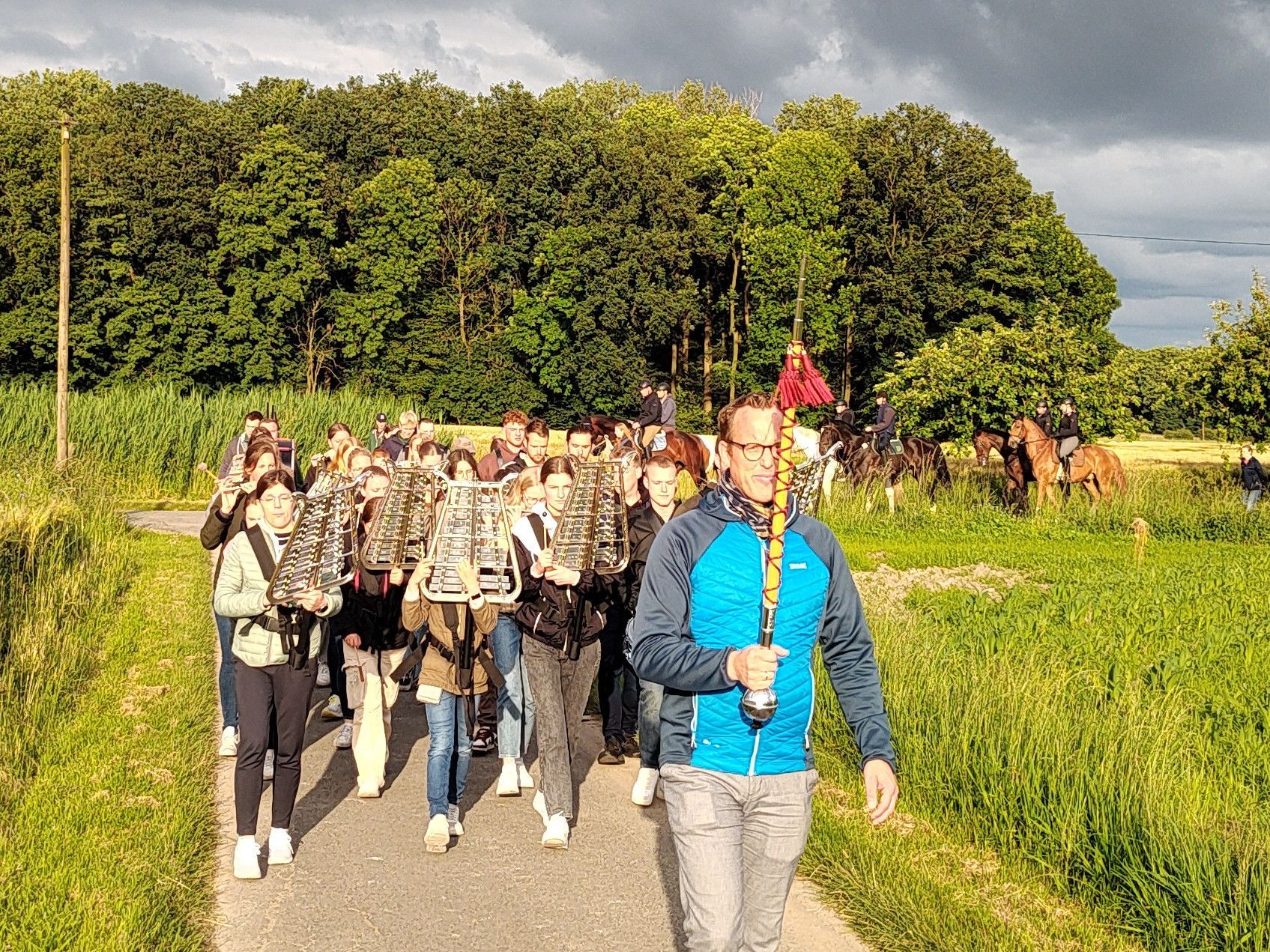 Seit über 30 Jahren gestaltet man diesen gemeinsam, seit 2008 sind die berittenen Offiziere aus Everswinkel mit dabei. Der Austragungsort wechselt seitdem jährlich zwischen den beiden Ortschaften. In diesem Jahr fand er am vergangenen Mittwochabend auf dem Hof Gerd-Holling in der Alverskirchener Bauerschaft Holling statt.