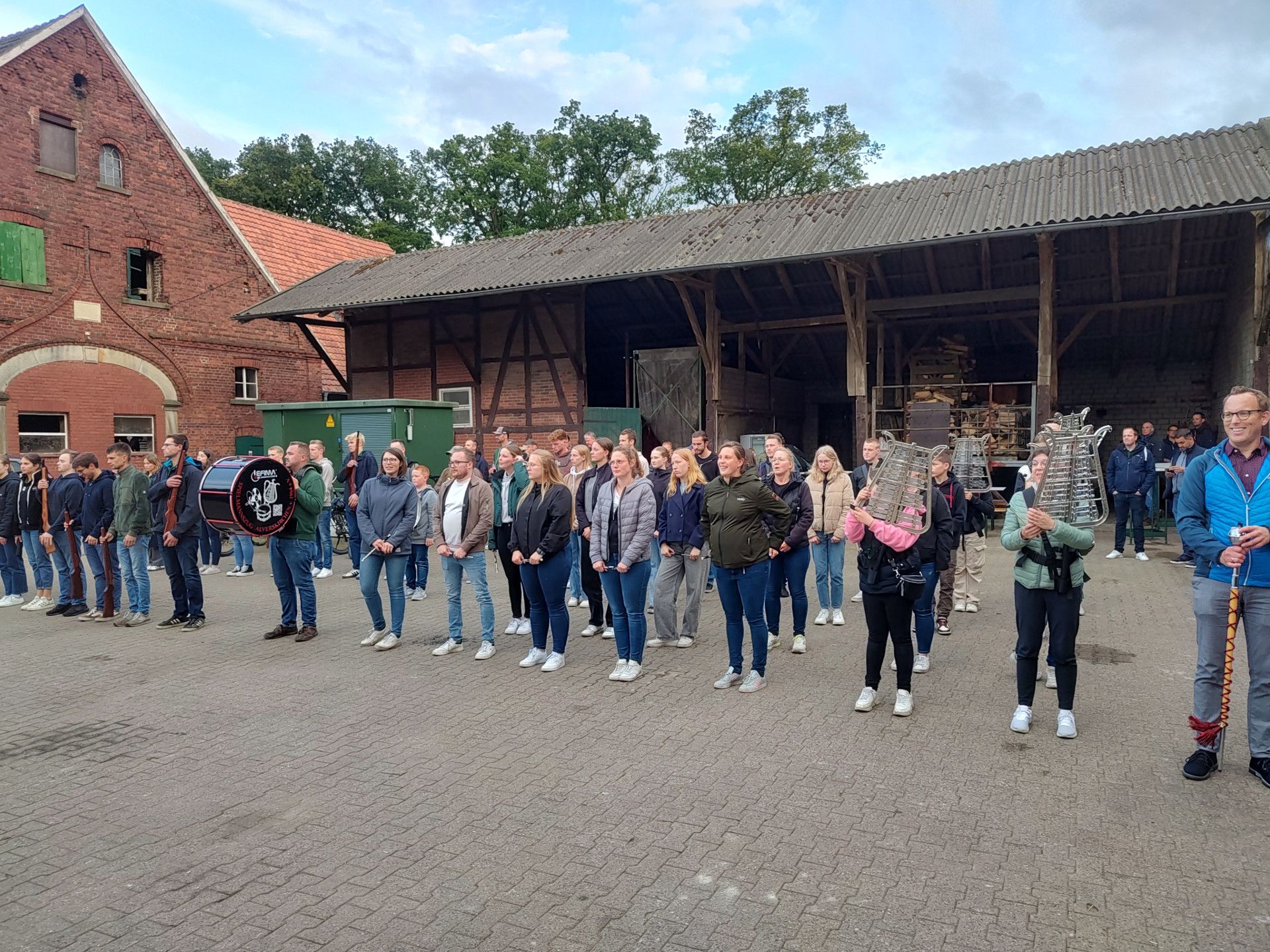 Es ist mittlerweile eine liebgewonnene Tradition, dass sich die Ehrengarde Alverskirchen zusammen mit den berittenen Offizieren beider Schützenvereine aus Alverskirchen und Everswinkel sowie dem Spielmannszug Alverskirchen kurz vor den anstehenden Schützenfesten zu einem gemeinsamen Übungsabend trifft.