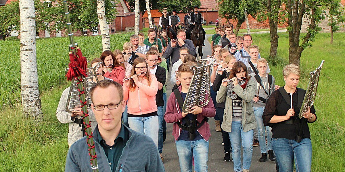 Dies gilt insbesondere auch für die teilnehmenden berittenen Offiziere und ihre Pferde, schließlich sind die lauten Kommandos, die Abnahme der Kompanien, die Musik von den beteiligten Spielmannszügen und Blasorchestern und die zahlreichen Zuschauer keine alltägliche Situation. Damit sich die Pferde hieran kurz vor den Schützenfesten wieder gewöhnen, wurde am vergangenen Mittwoch Abend beim traditionellen Übungsabend zusammen mit der Ehrengarde Alverskirchen, dem Spielmannszug Alverskirchen sowie den berittenen Offizieren aus Alverskirchen und Everswinkel auf dem Hof Neumann in der Bauernschaft Evener ausgiebig geprobt. Ein wenig stolz blickte Oberst Heinz Tertilt dabei auf die Anfänge der Veranstaltung zurück. Vor genau 25 Jahren haben die berittenen Offiziere aus Alverskirchen erstmals den Spielmannszug um einen gemeinsamen Übungsabend gebeten - dass er damals selbst erstmals als Oberst auf dem Pferd saß, vergaß Tertilt dabei zu erwähnen. „Als Reiter haben wir schnell gemerkt, wie wichtig dieser Termin für uns ist.“, spielte Tertilt auf die anfängliche Nervosität der Pferde hin, die sich im Verlauf des Übungsabends jedoch schnell legte. Nach und nach erweiterte sich der Kreis um den Vorstand, die Ehrengarde und den Fahnenschlag und seit mittlerweile neun Jahren sind auch die berittenen Offiziere aus Everswinkel mit dabei. Seit dem wechselt der Veranstaltungsort jährlich zwischen Alverskirchen und Everswinkel. Beim abschließenden Beisammensein mit Grillwurst und kühlen Getränken bestand noch Gelegenheit zum Austausch untereinander und um das ein oder andere Detail der noch zu erledigenden Aufgaben bis zum Beginn der beiden Schützenfeste in Everswinkel am Samstag, den 02. Juli und in Alverskirchen am Freitag, den 08. Juli zu besprechen.
