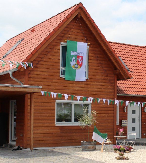 Der Countdown läuft – noch 55 Tage, bis Alverskirchen anlässlich des 175jährigen Bestehens des Schützenverein Alverskirchen von 1840 e.V. wieder in grün-weißer Farbpracht erstrahlt. Das Schmücken des Dorfes in den Vereinsfarben wird dabei nicht nur von den Verantwortlichen des Vereins übernommen. Während die großen Banner über den Einfahrtsstraßen des Dorfes vom Vorstand und die Fahnen an den Laternen alljährlich von der Ehrengarde aufgehängt werden, beteiligen sich in der jüngeren Vergangenheit des Vereins auch immer mehr Bürger am Schmücken der Straßen. So haben sich einige Mitglieder schon die Vereinsfahne mit dem Emblem des Schützenvereins zugelegt und hissen diese während der Festtage am privaten Fahnenmast im Vorgarten. „Wir hoffen, dass es anlässlich des Jubiläums noch einige mehr werden!“, so der Wunsch des Vereinsvorstandes. Die Vereinsfahnen sind in dem Maßen 100*150 oder 115*200 cm erhältlich, zeichnen sich durch eine hohe Stoffqualität aus und sind daher nicht nur robust, sondern auch pflegeleicht und einfach zu reinigen. Kurzentschlossene können sich noch bis zum 08.06.2014 bei der Schriftführerin und amtierenden Königin des Vereins Martina Samberg (Tel.: 02582/9511) eine Fahne zum Jubiläum bestellen. Das Engagement vieler Mitglieder des Vereins erstreckt sich allerdings nicht nur auf das Hissen einer Fahne zum Fest. So werden mittlerweile schon ganze Straßenzüge durch den Einsatz ihrer Anwohner mit grün-weißen Wimpelketten überspannt. Den Anfang machten hier im Jahre 2002 die Anwohner der Schützenstraße, auf der traditionell auch das Antreten während des Schützenfestes erfolgt. Dass aus einer solchen gemeinschaftlichen Aktion auch ein kleines Fest für die ganze Straße werden kann, zeigen die Anwohner des Bergkamp. Seit 2006 schmücken hier Jung und Alt gemeinsam und nach dem Schützenfest wird im Rahmen des Abschmückens in geselliger Runde gegrillt. Im vergangenen Jahr wurde schließlich erstmals der Große Kamp mit über 350 laufenden Metern Wimpelkette überspannt und auch das Haus des dort ansässigen ersten Vorsitzenden Klaus Brüning verkündete optisch ansprechend das bevorstehende Fest. Viele Straßen, die die Schützenkompanie während der Umzüge durch das Dorf begehen, sind damit schon grün-weiß beflaggt. Hier und da zeigen sich allerdings noch immer „weiße“ Flecken. Der Vorstand des Schützenvereins hofft, dass die dort wohnenden Vereinsmitglieder anlässlich des 175. Jubiläums hier ebenfalls Initiative zeigen und sich an der Wandlung des Dorfes in grün-weiß beteiligen. Erwartet der Verein doch am Schützenfestsamstag den Besuch zahlreicher Gastvereine, die per Sternmarsch von vier Startpunkten über die folgenden Straßen zur Dorfmitte ziehen werden: Alter Hof, Am Vinckenbusch, Bergkamp, Brinkgarten, Ernst-Tertilt-Straße, Everswinkeler Straße, Großer Kamp, Hauptstraße, Neustraße, Schützenstraße, Telgter Straße, Vinckenweg und Wiemstraße.