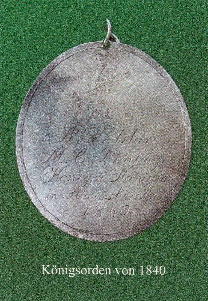 Die ersten genehmigten Vereinsstatuten besitzt der Verein noch heute als Originaldokument und als Erinnerung an das ersten Schützenfest ziert die älteste der Alverskirchener Königsketten die Silberplakette mit der Aufschrift „A. Hölscher, M.C. Püning – König und Königin 1840“. Wesentlich detaillierter sind hingegen die Aktivitäten des Krieger und Landwehr-Vereins überliefert, der direkt in die Fußstapfen der früheren Schützentradition trat und 1872 sein erstes Kriegerfest als Schützenfest feierte. Die Heimat- und Brauchtumspflege und das Gedenken an die Gefallenen der Kriege war damals wie heute zentraler Bestandteil der Vereinsarbeit. Nicht immer war das Interesse der Bürger an dem Verein so groß, wie zur heutigen Zeit. Im Jahre 1885 drohte das Ende des Kriegervereins, da wegen Gleichgültigkeit der Mitglieder von einer weiteren Hebung der Beiträge abgesehen wurde. Zum Glück, so fanden Tertilt und Niehues heraus, habe es aber immer Männer gegeben, die sich für die Erhaltung des Vereins eingesetzt haben. Mit der Umwandlung des Krieger- in einen Schützenverein konnte das Interesse im Dorf deutlich gesteigert werden. So wurde die Tradition bewahrt und die zwischenmenschlichen Beziehungen gepflegt und ausgebaut. Bauernschaften und Dorf hielten treu zusammen, bei den Schützenfesten war und ist Alverskirchen eine große Familie. Immer habe gegolten: „In guete Tied, in leige Tied, wie hoalt bineene alltied.“. Doch nicht nur die aufgearbeitete Geschichte des Vereins ist Bestandteil der Festschrift, diese enthält zudem viele Zahlen, Daten und Namen. So sind etwa alle Könige, Vorstandsmitglieder und hochrangige Offiziere mit Namen und Dienstzeit aufgeführt. Auch die Mitgliederentwicklung wird dargestellt. Eigene kurze Kapitel beschäftigen sich zudem mit der Ehrengarde, den Fahnenschlägern sowie dem Dorfarchiv als besondere Aktivposten des Vereins. Komplettiert wird die Chronik durch Fotos von den Throngesellschaften und Königsplaketten der letzten 25 Jahre. Erhältlich ist die Festschrift während des Schützenfestes für eine geringe Schutzgebühr. Der Verein dankt allen Sponsoren, die durch ihre Spende die Erstellung der Festschrift erst ermöglicht haben.