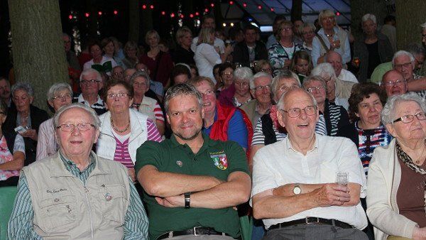 Seit gut drei Jahren wird in der Grundschule Alverskirchen die „Plattdeutsch AG“ angeboten und von den Grundschülern mit viel Freude angenommen. Was sie dort gelernt haben, präsentierten sie ihrem begeisterten Publikum in mehreren Liedern und Sketschen rund um das Thema Schützenfest und Schützenwesen. Und auch der Fahnenschlag und die Tanzgruppe wurden für ihre Auftritte mit viel Applaus belohnt. Zwischendurch entlockte Robert Schulze Wettendorf den ehemaligen Vorsitzenden des Vereins, Paul Averbeck (1975 – 1981), Walter Kröger (1981 – 1991), Heinz Tertilt (1998 – 2003) und Ernst Wiesmann (2003 – 2011) viele denkwürdige und lustige Anekdoten und beleuchtete dabei zudem die bedeutsamen Entwicklungen, die der Verein in diesen Jahren genommen hat. Untermalt wurden die Interviews mit passenden Bildern, die Burkhard Sommerhage und Willi Huster im Dorfarchiv zusammengetragen hatten. Nach dem Programm verweilten Schützen und Gäste noch lange im Schützenbusch und genossen bei milden Temperaturen viele Gespräche und das ein oder andere kühle Blonde.