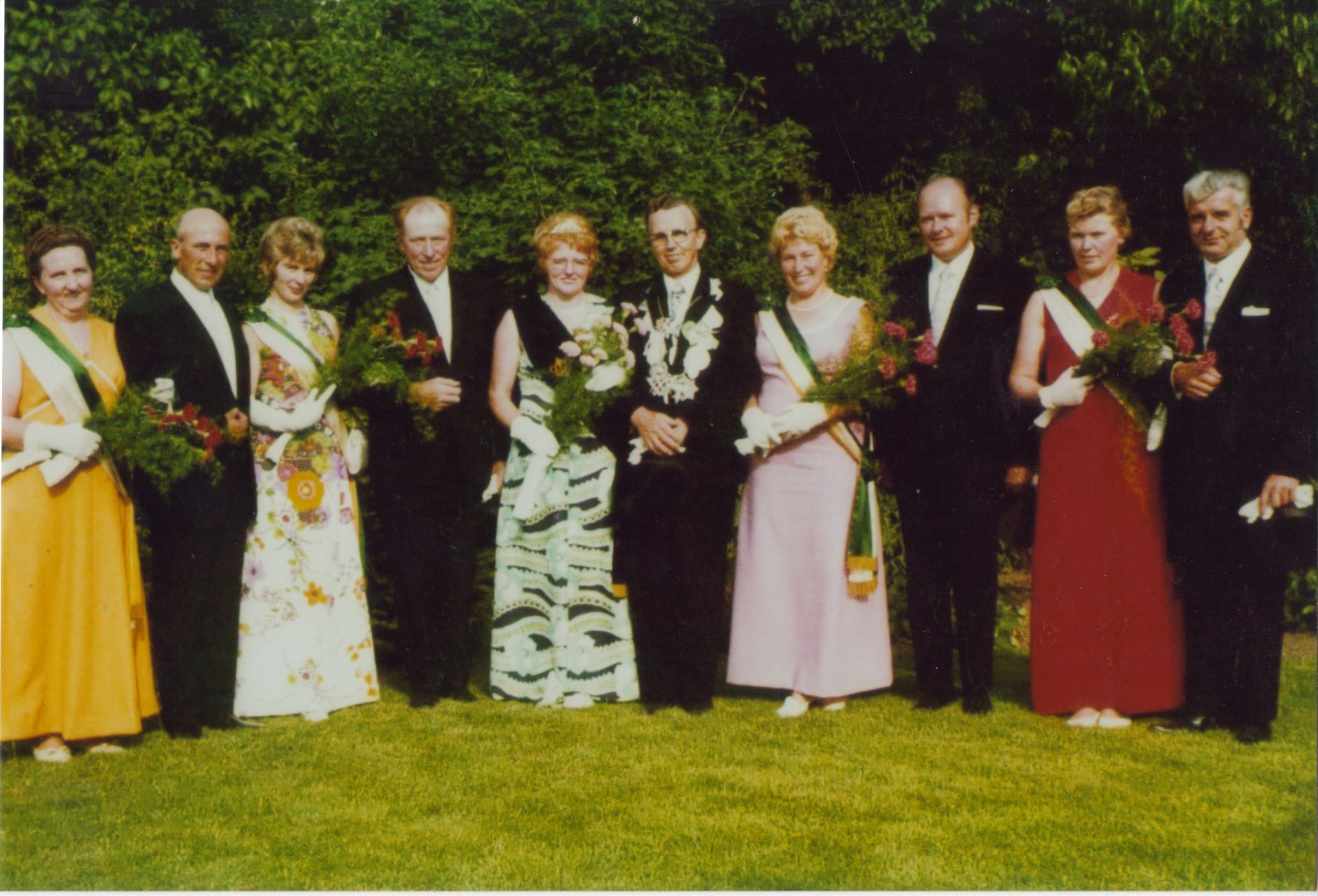 Während in den Jahre 1873, 1898, 1923 und 1948 überwiegend kriegsbedingt keine Schützenfeste gefeiert wurden, titelte die WN im Jahr 1973 „Bürgermeister jetzt auch Schützenkönig“. Seinerzeit war die Gemeinde Alverskirchen noch selbstständig und wurde nunmehr ein Jahr lang von Bürgerschützenkönig Ernst Tertilt regiert, der zugleich auch das Amt des Oberst im Schützenverein bekleidete. Zur Königin erkor er sich vor 50 Jahren Gisela Hegemann. Den Hofstaat bildeten Heinz Hegemann und Maria Tertilt, August und Paula Winkelkötter, Bernhard und Anneliese Esselmann sowie Willi und Hildegard Lorber. Ein besonderes Highlight stellte seinerzeit der fünffache Fahnenschlag bei der Krönung dar, den Walter Kröger, Alfons Schwienhorst, Franz Kretschmer, Heinz Beermann und Hubert Herzog vor begeisterten Zuschauern gekonnt aufführten.