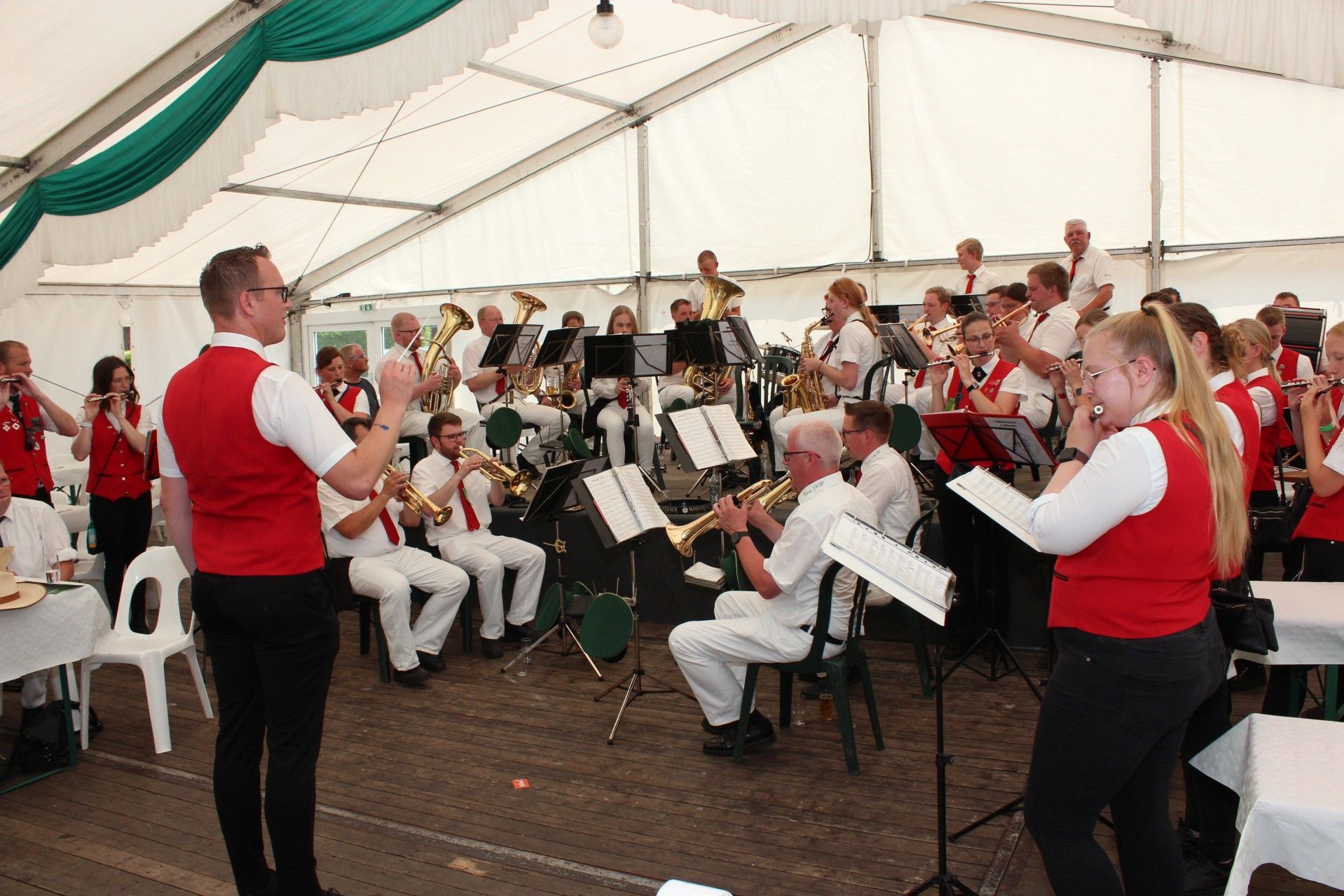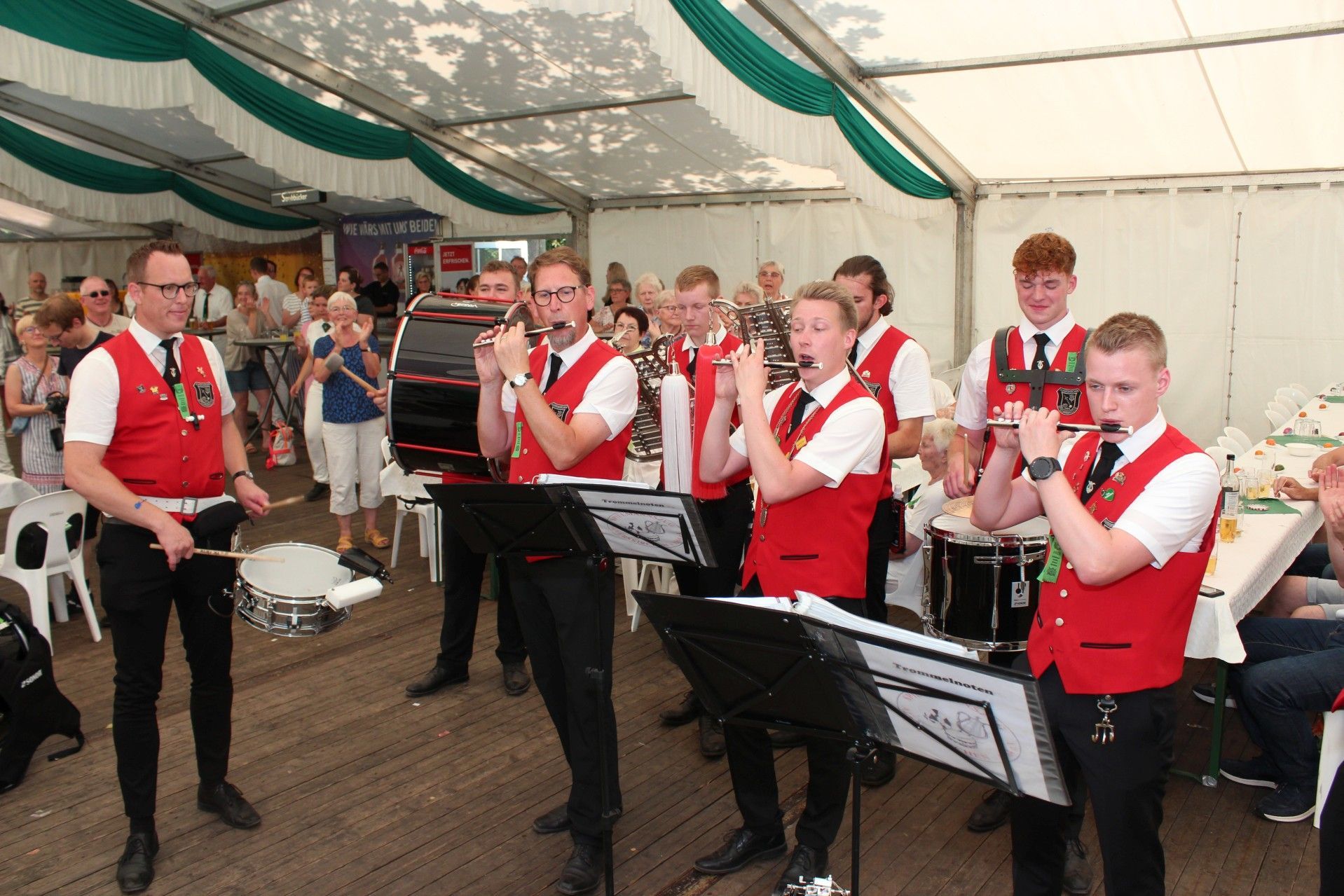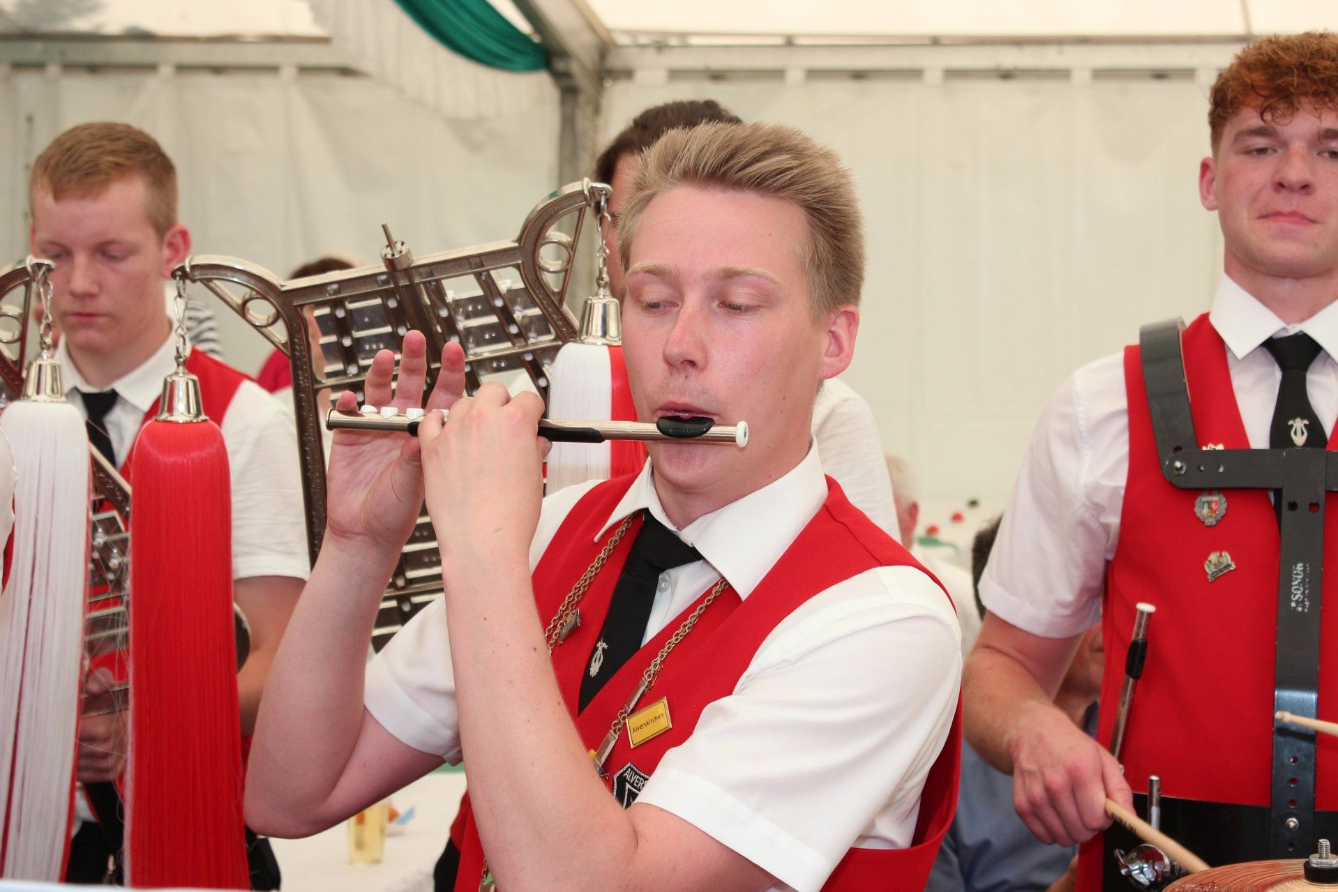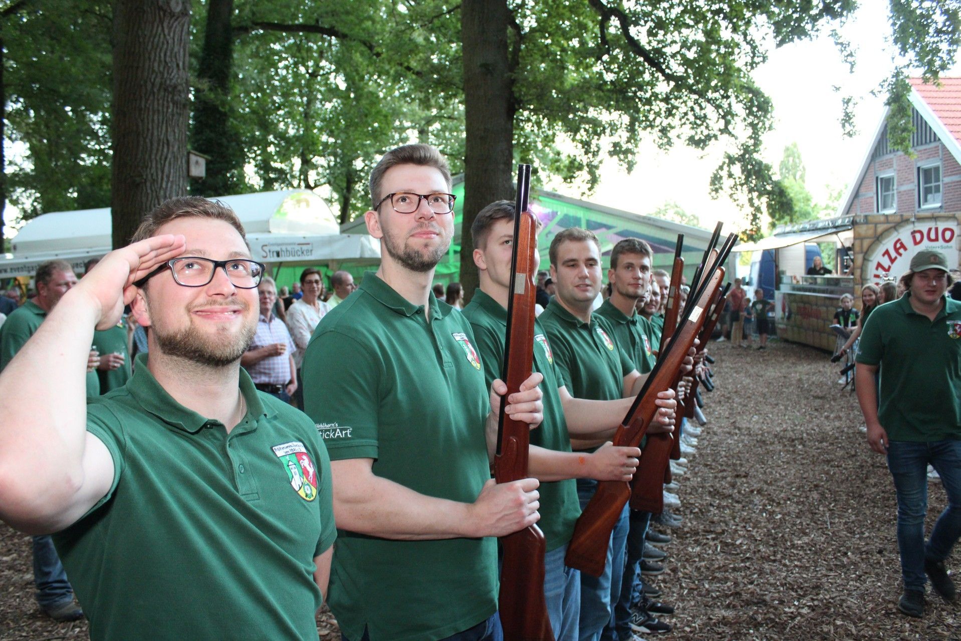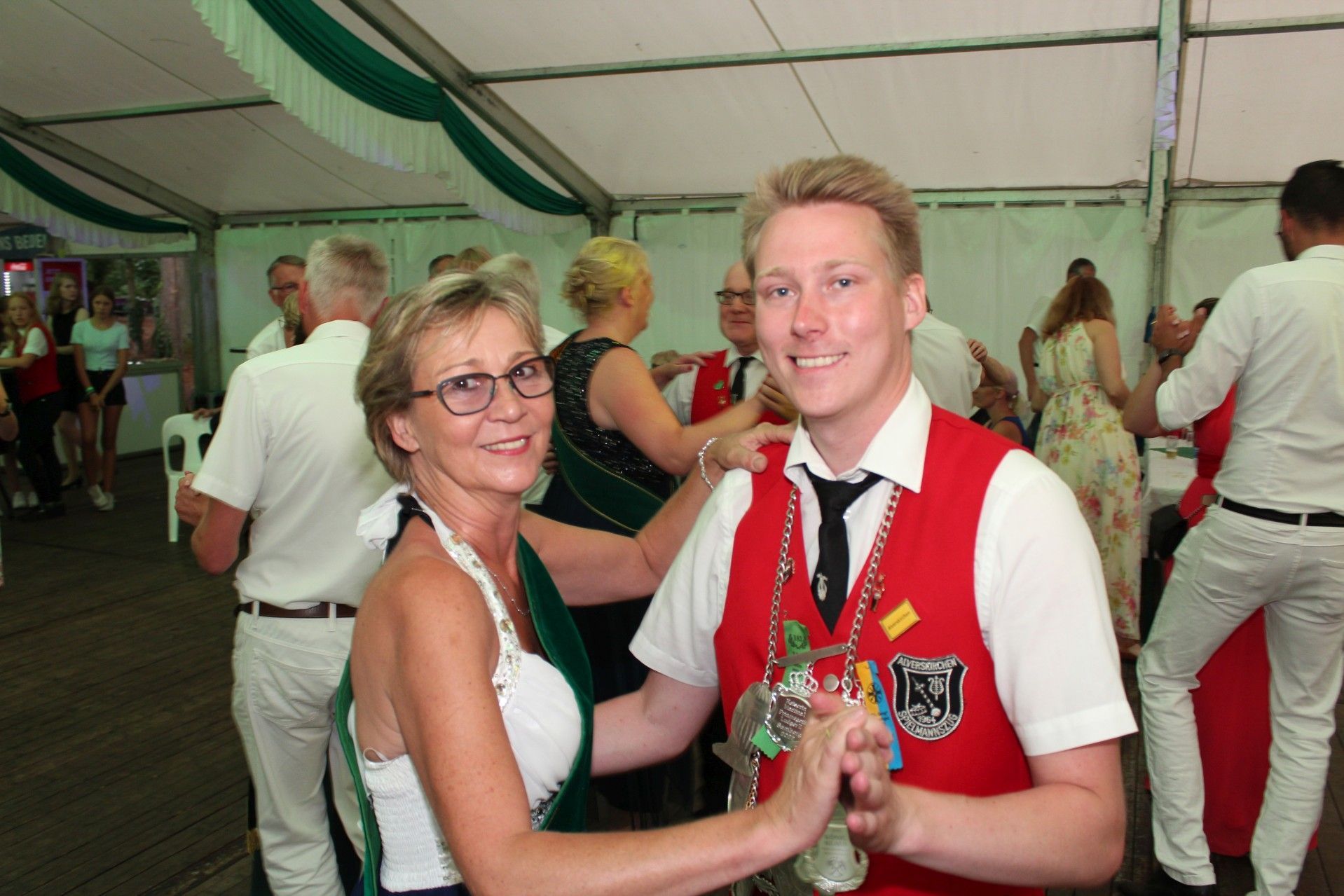 Nach dem anschließenden Festumzug durch das Dorf und dem gemeinschaftlichen Kaffee im Festzelt hatten die Schützen kurz Gelegenheit, sich für den Abend frisch zu machen. Auch wenn die Polonaise durch das Dorf in diesem Jahr leider dem Wetter zum Opfer fiel, fand das Schützenfest beim festlichen Königsball mit der Band „Rainbow“ einen krönenden Abschluss. Bei ausgelassener Stimmung feierten die Schützen ihre neuen Majestäten bis in die frühen Morgenstunden.