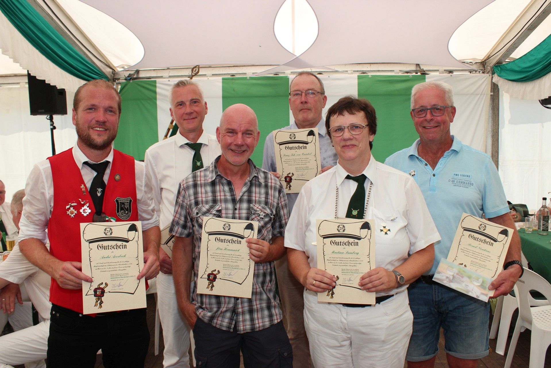 Für 25jährige Mitgliedschaft wurden Andre Averbeck, Jörn Kommnick, Martin Lauhoff, Thomas Mors, Bernd Nienhaus, Martina Samberg, Tobias Schulte, Tobias Schulze Brüning und Franz Freiherr von Twickel geehrt. 50 Jahre halten Joachim Pützer, Ludger Roer, Alfons Ruhe und Erwin Stockhausen dem Verein bereits die Treue.
